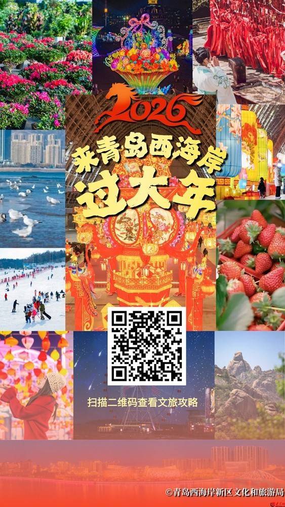 r旅居西海岸,称心过大年!来青岛西海岸过大年,从山海景区的冬日盛景到文博场馆的非遗雅韵;从旅店的暖心礼碰到街区的烟火阛阓;从冰雪赛场的心扉驰骋到草莓大棚的清甜养息;青岛西海岸新区春节时代文旅行动丰富多彩,承包你系数假期的怡悦与称心。随着这份青岛西海岸新区2026春节文旅攻略,在西海岸相见一场生机勃勃的马年新春盛宴,热干与闹过大年。