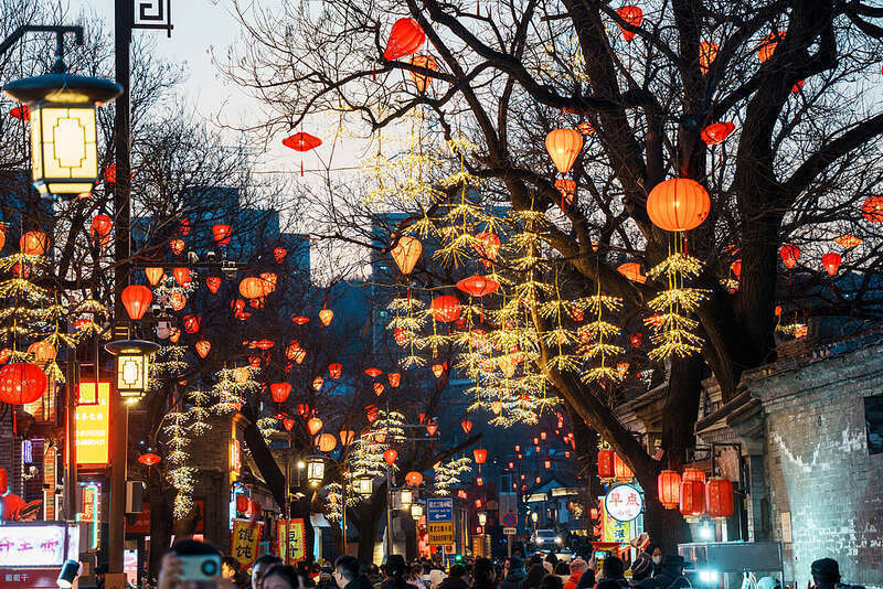 当我抵达令东说念主又老成、又生疏的“时势口历史文化街区”时,天色照旧暗了下来。街口一滑灯笼亮起,衬托出暖洋洋的年味。顺着东说念主流往里走,街说念两侧是修缮一新的院落和门脸,灯光映着青砖灰瓦,既有节日的吵杂,也保留了老屋子的安谧感。年青东说念主举入辖下手机取景,孩子追着发光装配跑,老东说念主徐徐走在一旁,构成了一幅充满活力的节庆画卷。