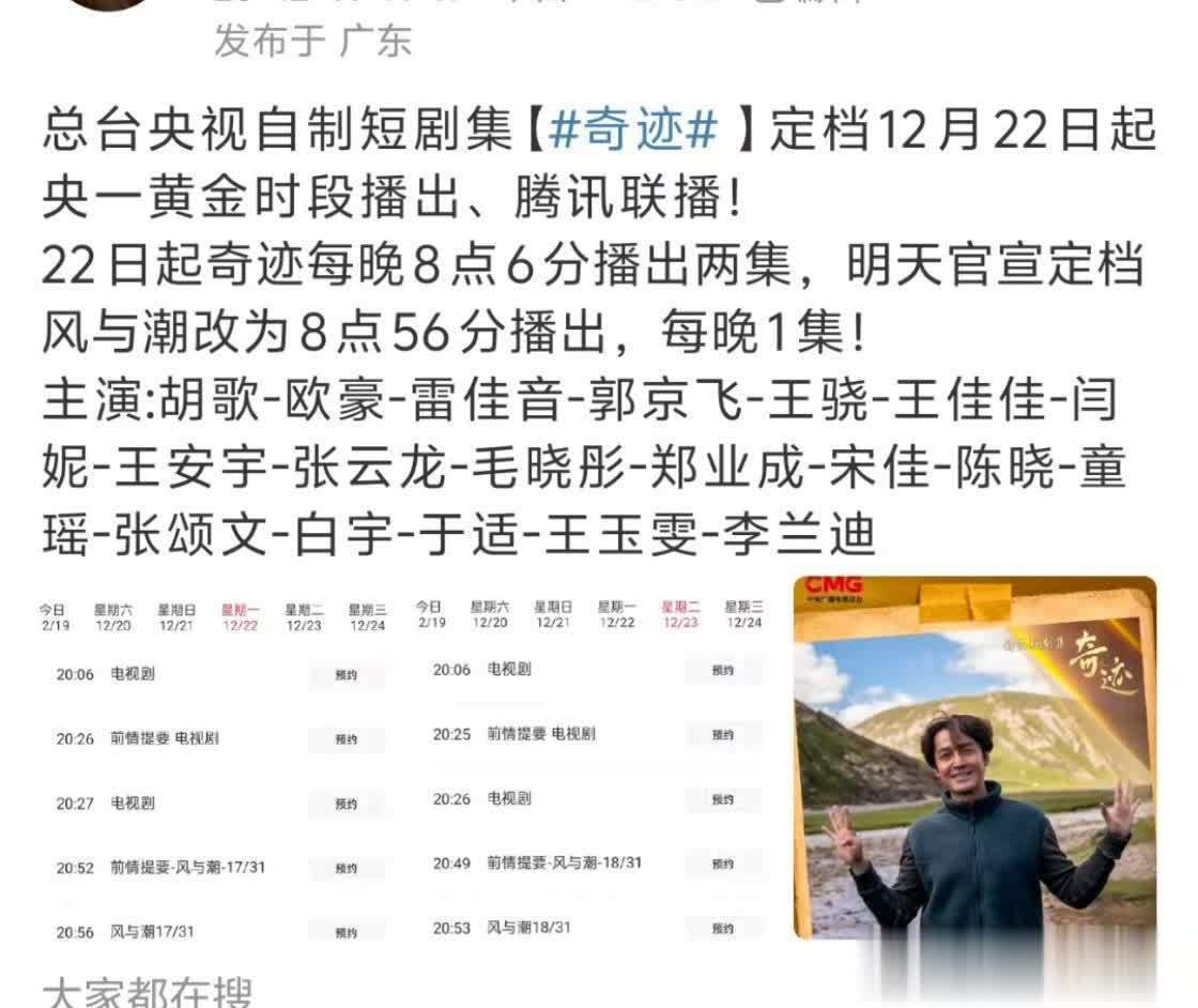《遗迹》的排播策略号称“风光级”:央视一套黄金档首播后,2026年1月12日登陆央视八套黄金档,同步腾讯视频全网独播。