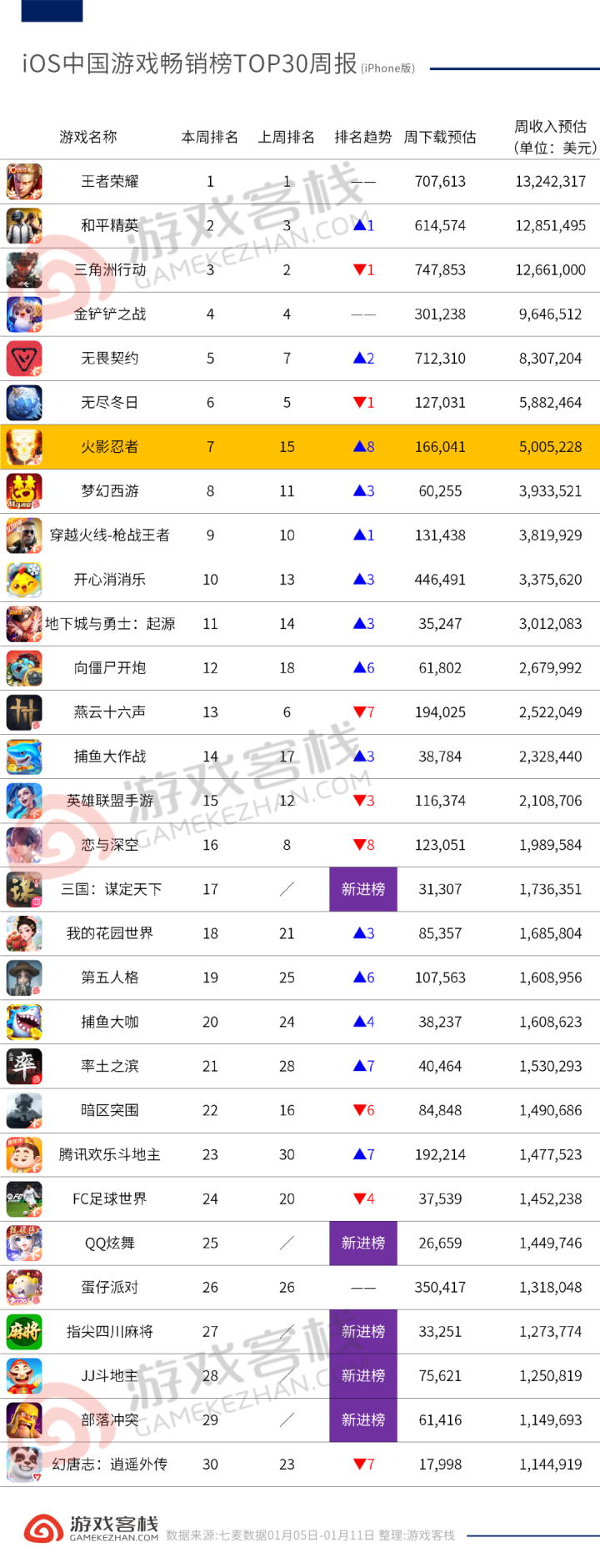 字据七麦数据统计来看,很长一段时候里,在iOS中国大陆游戏畅销榜上出现的家具真实皆是运营跳跃一年的杰作,少有登场即爆的黑马游戏开云Kaiyun体育全站,上周举座名次变化不大,共有3款游戏预估周收入跳跃1000万好意思元,另外,《三国:谋定宇宙》《部落冲突》等5款游戏再行纪念。