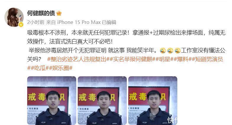 何健麒在晒出无作歹记载后,许多吃瓜网友也皆启动确信他,以为是前女友在驳诘博取流量。可前女友却无间回怼:“吸毒根底不涉刑,原本就无任何作歹记载”。无作歹记载是属于无效操作。况兼何健麒也未公开尿检/发检的论说,亦未复兴2021年被警方带走访问的记载是否存在,是以依旧是存疑的。