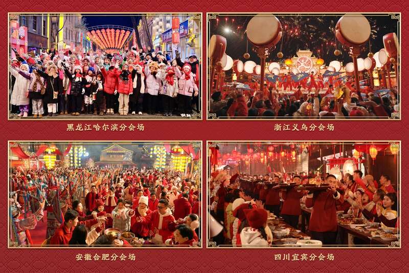 四地分会场各具风味,从冰天雪地到长江之滨,从科创沃土到商贸新城,在新群众文艺的改进创造里展现各地年成。