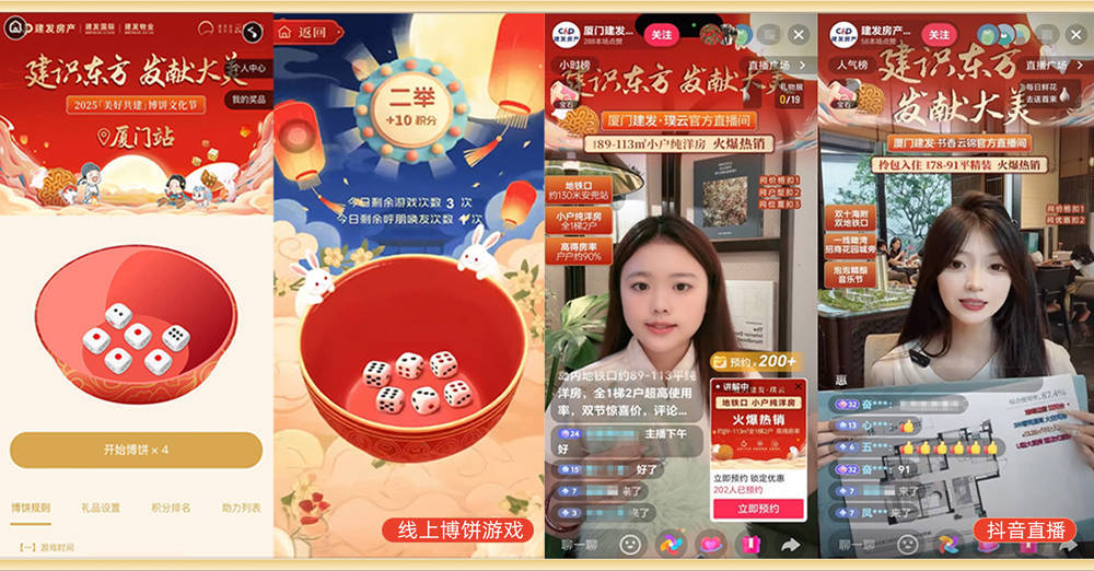佳节时分,建发房产依托“建发房产钻石会”“建好房”平台及官方抖音号,打造“云上欢聚”会场,让节日氛围冲破空间放胆。线上博饼游戏招引超25万东谈主参与,累计参与次数超130万次,“钻石会”平台总浏览量超1100万次,让好运与应承跳跃距离传递;建发房产官方抖音号累计直播5026场次、和543万不雅看客户一皆云上过节。